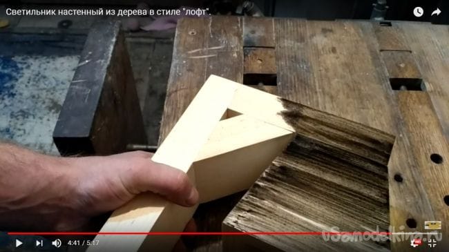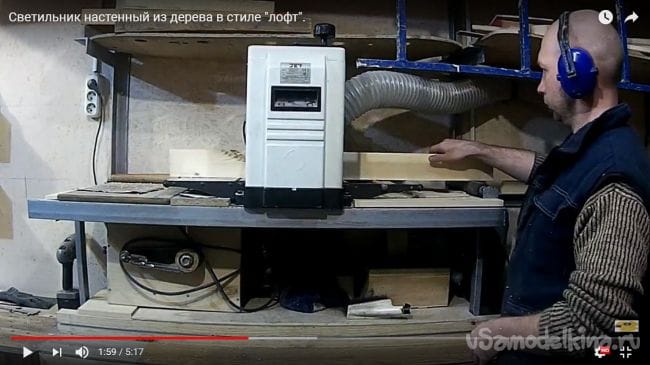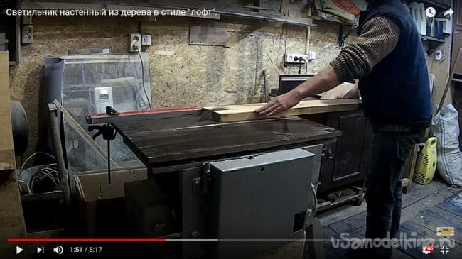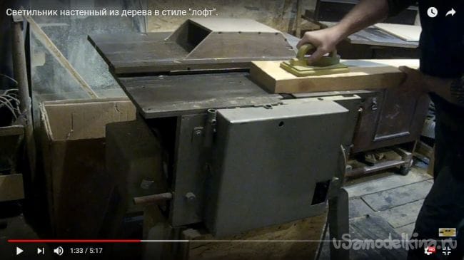 Так как в самом начале было задумано сделать настенную лампу, то для такого типа нужно еще несколько досок, которые будут соединены между собой в виде буквы Г. Берем доску и прогоняем ее на фуганке, убирая все неровности.