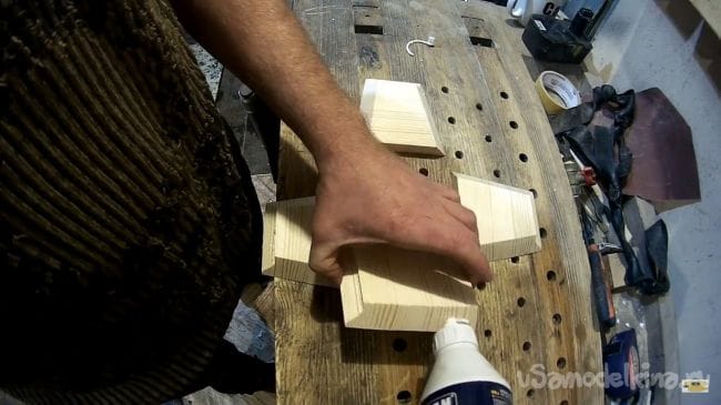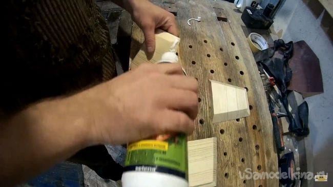 После этого склеиваем полученные детали между собой при помощи клея для дерева и фиксируем резинками, например, подойдет велосипедная камера.