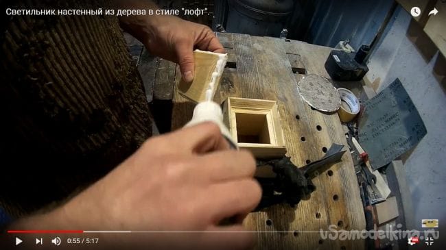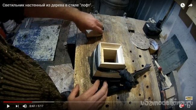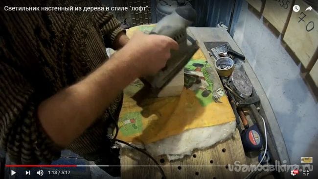 После того, как клей высох и конструкция лампы держится шлифуем поверхность при помощи шлифовальной машинки, данную процедуру проделываем со всеми плоскостями.