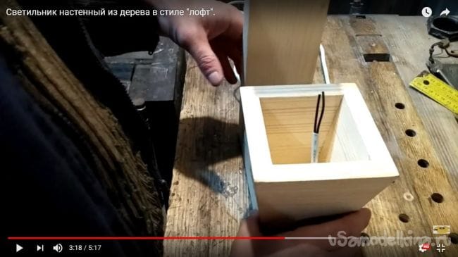Пришло время заняться проводами, а точнее проложить провод по всему светильнику. Просовываем провод в паз и в сам фонарь через ранее проделанное отверстие.