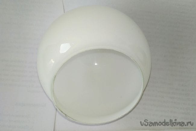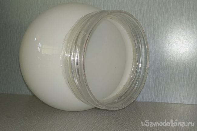 Шаг 1: За основу я взял стеклянный матовый плафон от старой люстры, парочка которых завалялась в хозяйстве. После проведения эксперимента со светодиодами и плафоном я остался доволен качеством рассеивания света, получался белый светящийся шар, с очень равномерным распределение яркости - просто шар без световых пятен. То, что и было нужно.