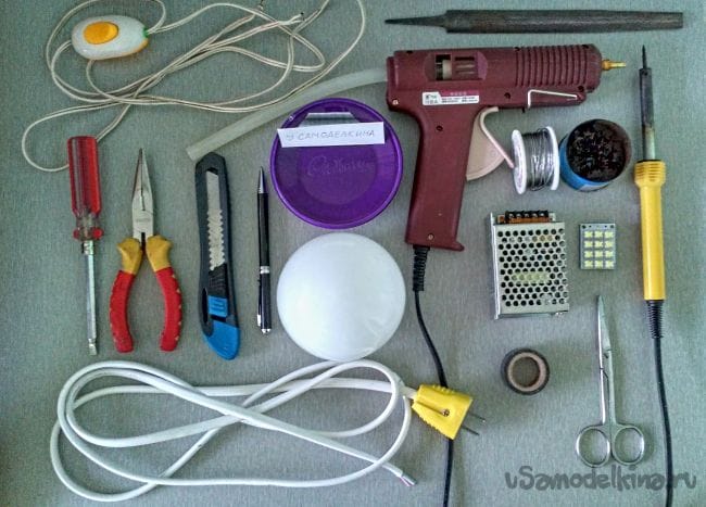 Как источник питания, я использовал блок питания на 5 В. Была идея разместить внутри ночника аккумулятор и сделать его беспроводным, но мне показалось это лишним, так как светильник не предполагалось таскать с места на место, а «прописать» на прикроватной тумбочке.
