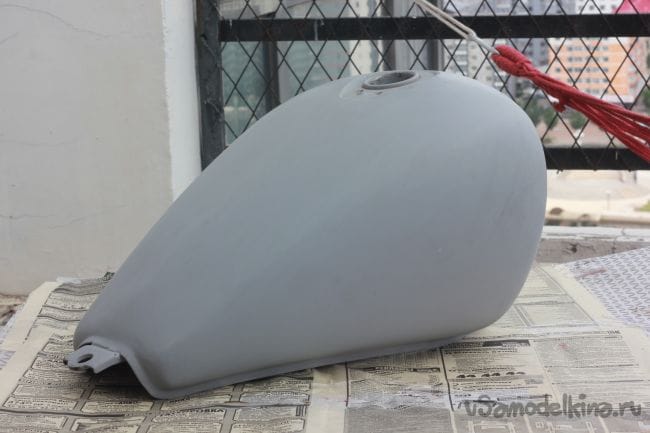 Шпаклевать, пришлось совсем немного, буквально один квадратный сантиметр на бензобаке (там была маленькая вмятина)