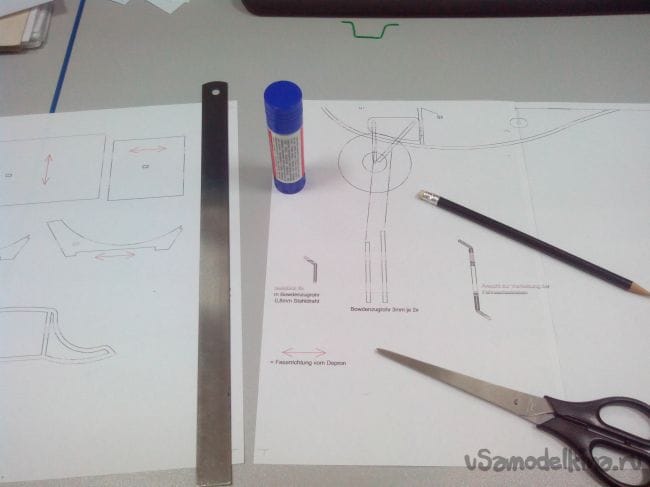 Распечатываем чертежи и склеиваем обычным клеем для бумаги.