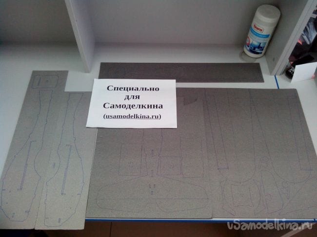 Вырезаем все детали из депрона резаком.