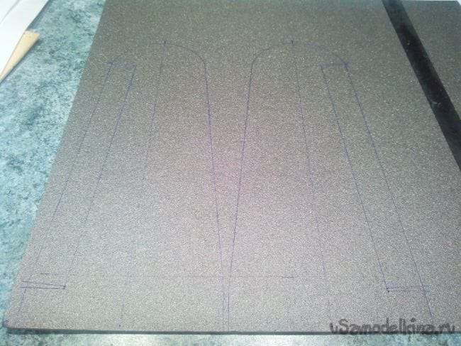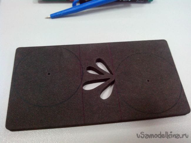 Прикладываем шаблон к листу депрона и аккуратно обводим ручкой или маркером для дисков контуры.