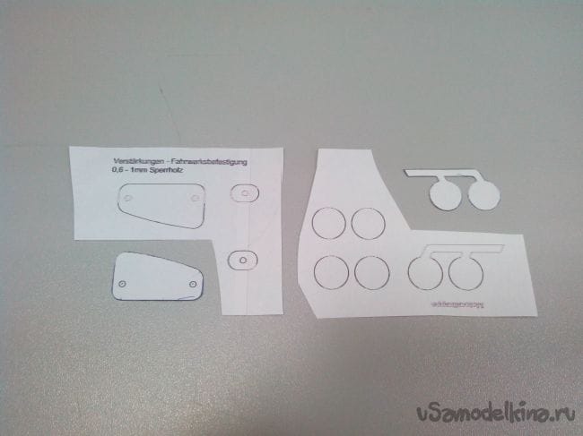 Шаблоны усилений под стойки шасси и имитации выхлопных труб: