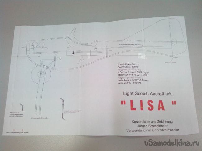 Чертежи авиамодели LISA (взяты отсюда) в формате PDF.