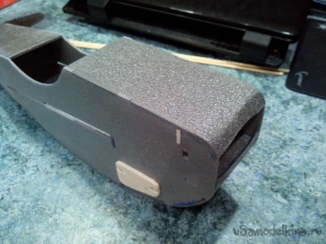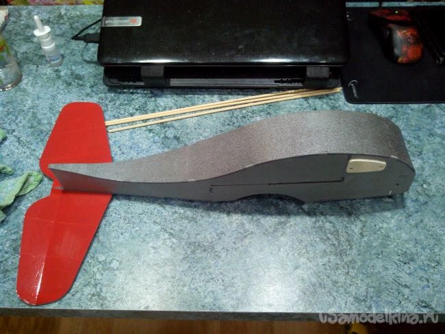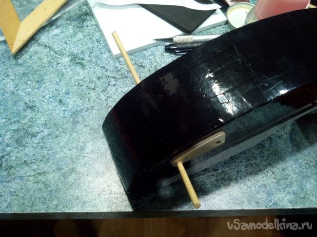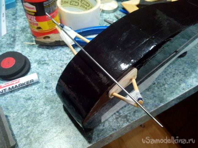 И вклеиваем его эпоксидным клеем в заранее сделанный разрез в хвостовой части.