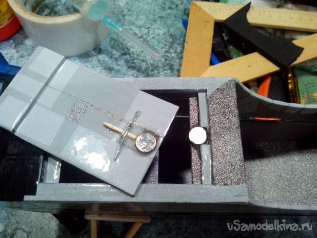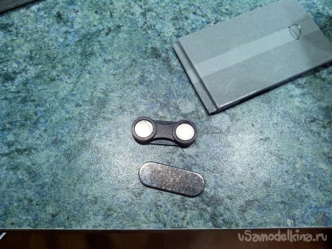 Из магнита от бейджика выковыриваем сами магнитики и вклеиваем их в крышку и внутрь фюзеляжа эпоксидным клеем.