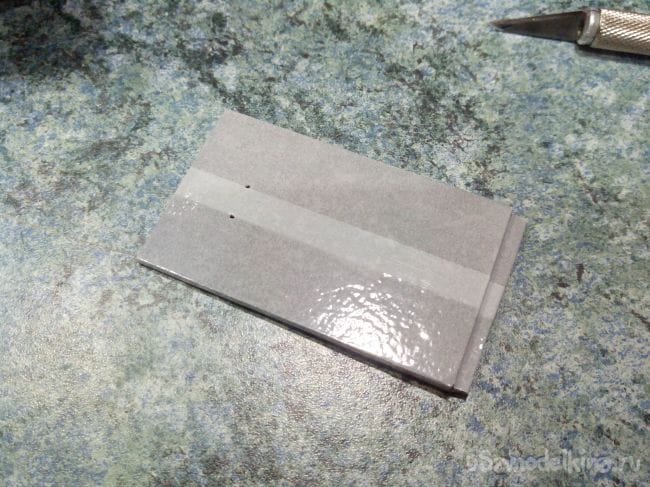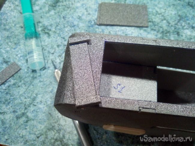 Внутрь вклеиваем в переднюю часть упор, чтобы в него входил «носик» на крышке.