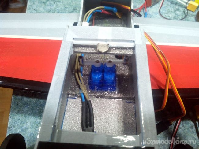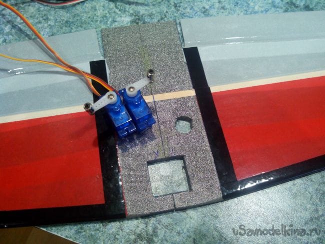 Вклеиваем сервоприводы элеронов.