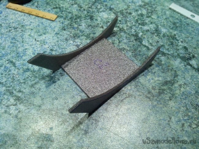 Мотораму и усиления под шасси выпиливаем лобзиком и обрабатываем края наждачкой.