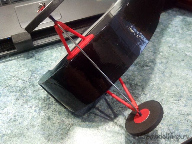 Стойки шасси делаем из бамбуковых палочек.