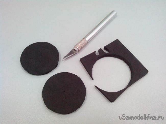 Резаком вырезаем заготовки колес.