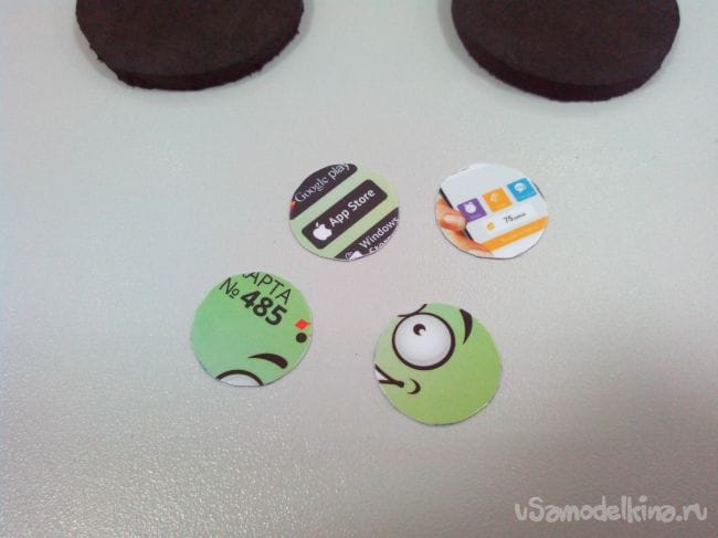 Из пластиковой карты вырезаем четыре диска, шкурим их с двух сторон и делаем в них отверстия.