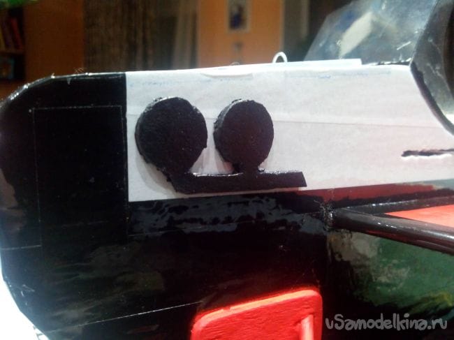 Из депрона вырезаем имитации выхлопных труб и красим их акриловой краской.