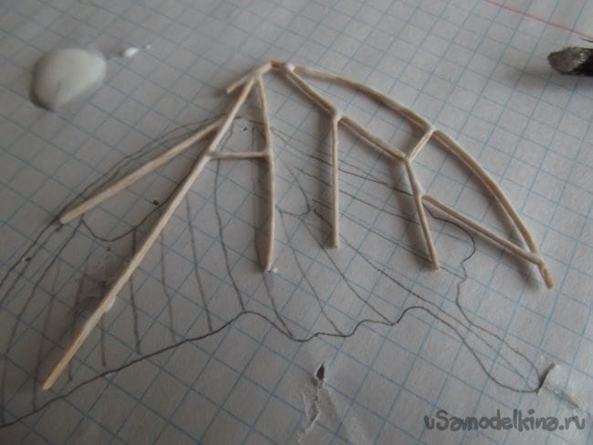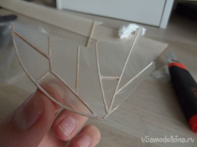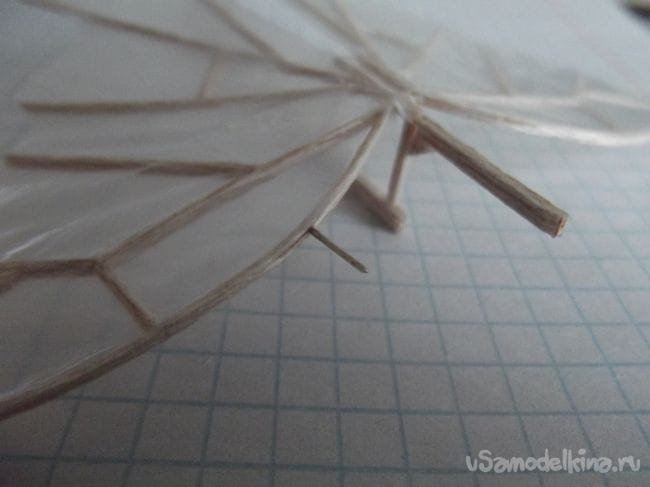 Теперь предстояла еще более сложная работа: сделать точно такое же крыло. Это была самая сложная часть. Я переделывал крыло два раза: то рейки ломались в самый последний момент, то рейки оказывались слишком маленькими. Но все-таки мне удалось сделать почти идеальную копию.