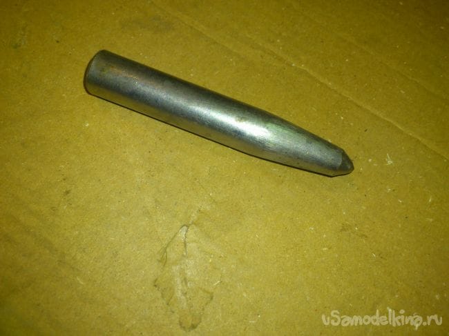 Вставив заклёпку, я просто развальцую её с обратной стороны вот таким керном, сделанным когда-то из автомобильного клапана: