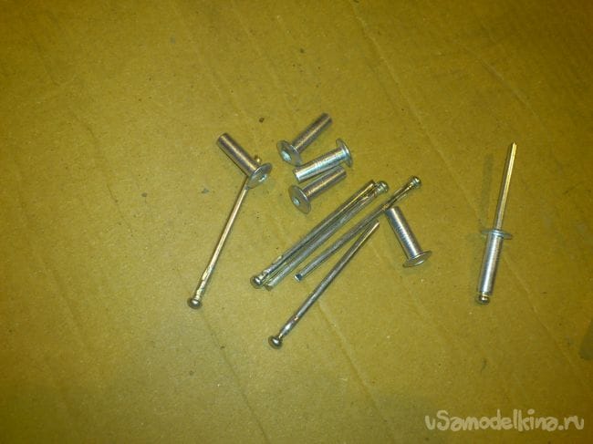 Но в них тоже присутствует сталь - сам стержень, которым расклинивается заклёпка. Поэтому я их разобрал - просто выбил сткржни: