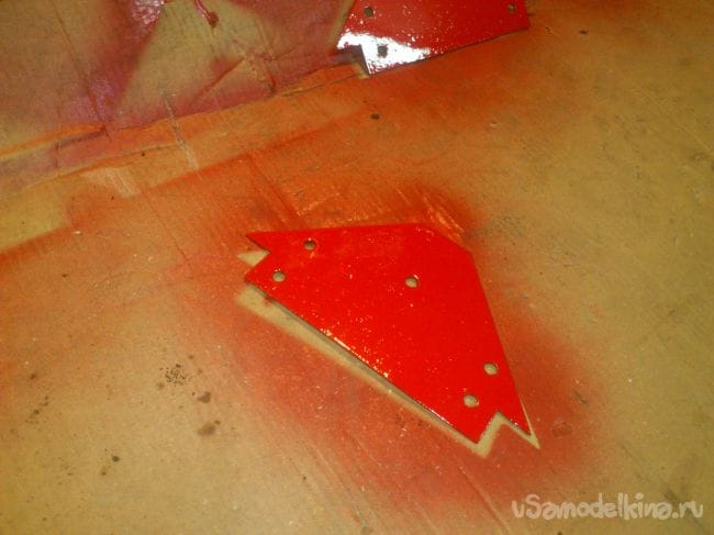 Но, перед этим нужно покрасить. Я просто брызнул эмалью из баллончика красного цвета. (Почему я выбрал именно ярко красный цвет, я думаю, объяснять не нужно))))):