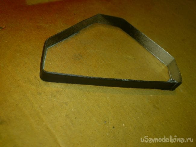 Далее я занялся "тонкой подгонкой". Ведь, болгаркой вырезать очень точно не представляется возможным, а точность нужна до долей миллиметра. Поэтому, доводить пришлось вручную Я взял отрезок широкой профильной трубы, расстелил на нём полосу наждачной шкурки, и вручную, на ней стачивал стороны моих металлических треугольников, периодически вкладывая их в слесарный угольник и проверяя "на просвет"