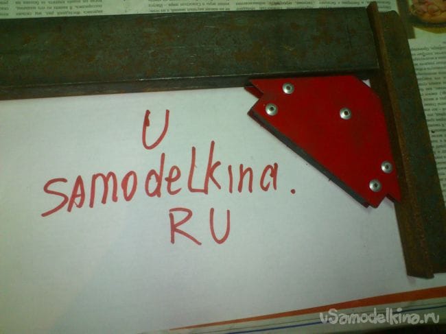 При помощи слесарного угольника, приложив его и полученный магнит к заготовке, я определил размеры моего будущего изделия, начертил его и вырезал болгаркой: