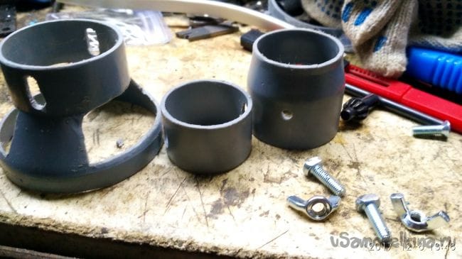 Вобщем выдалась свободная минутка решил сам сделать стойку под фрезы для дремели, понадобились труба 42 пластиковая канализационная и переход с 42 на 100 ну и винты 5- 2шт. два  барашка + дремель немного времени и фантазии фото ниже