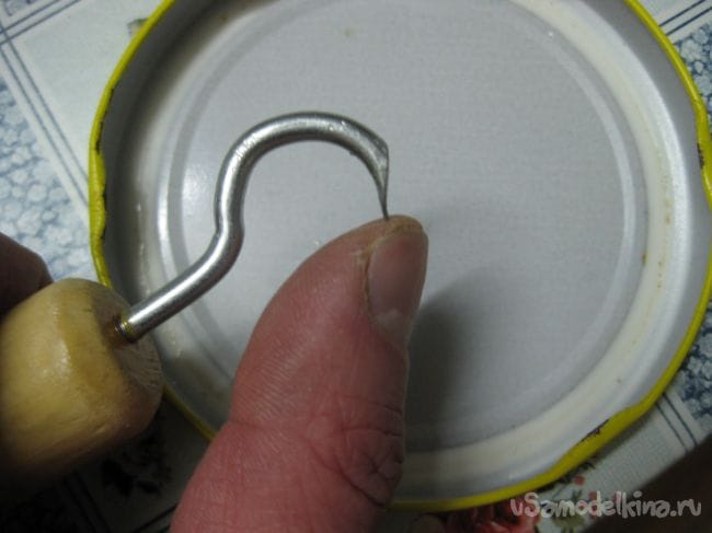 Вот так окончательно выглядит рабочая часть крючка, которой, собственно, мы и будем поддевать крышки на банках.
