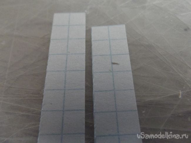 Теперь из листка в клетку я вырезал две полоски шириной в 2 клетки