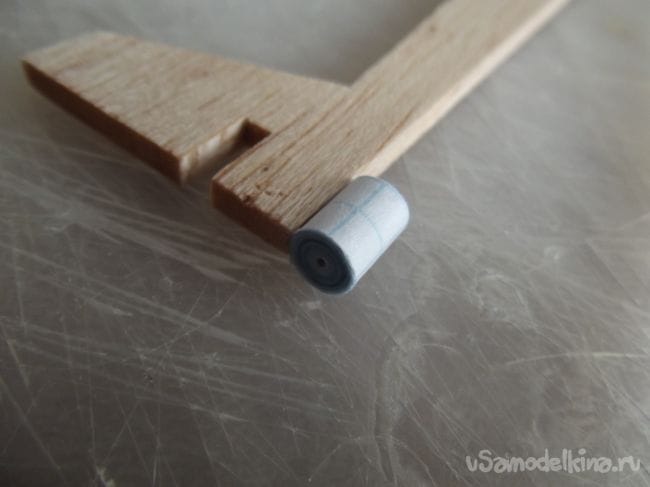 Далее я взял ушную палочку, отрезал от нее маленький кусочек и нанизал ее на вал .