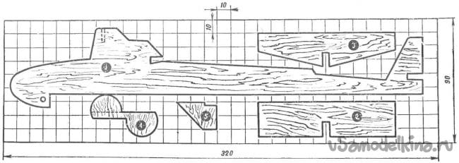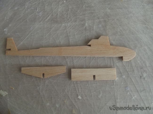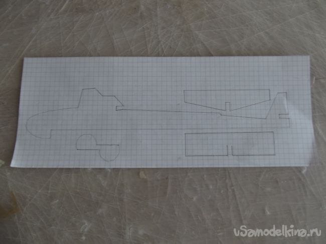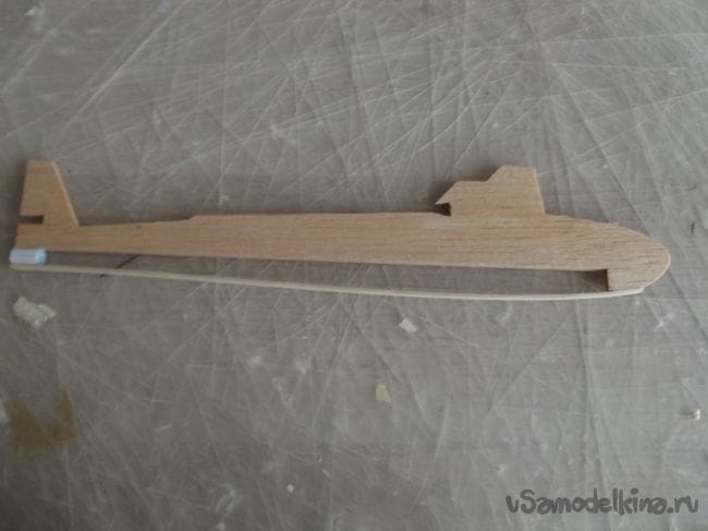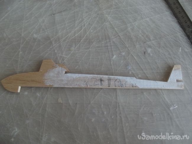 Затем я начал искать материл для всей лодки. В арсенале у меня была только бальза 1 мм. Но я нашел на своем шкафу крыло от старого сломанного планера, и было принято решение делать лодку из него.