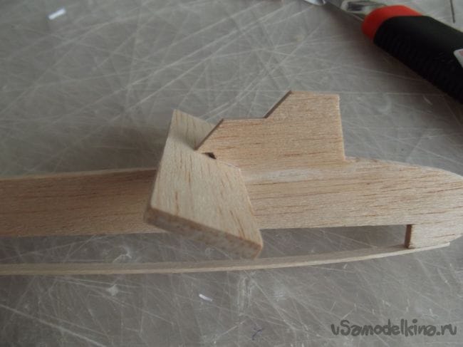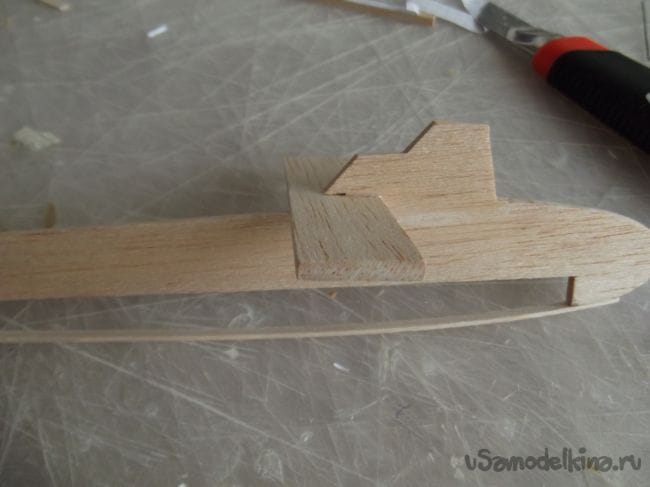 Затем я приклеил ее к носовой части лодки
