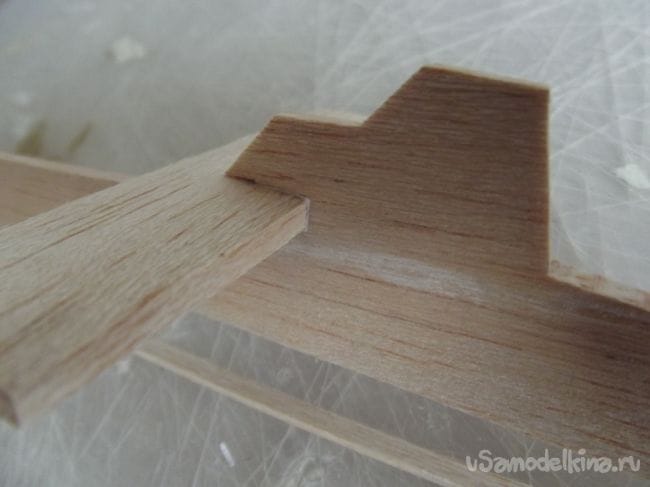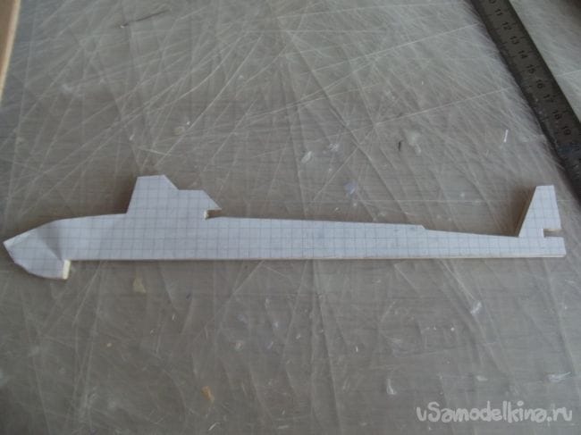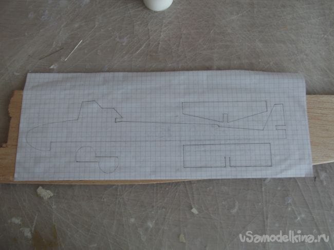 Я промазал клеем весь листочек с чертежом, аккуратно приклеил его к бальзе, а затем разгладил линейкой.