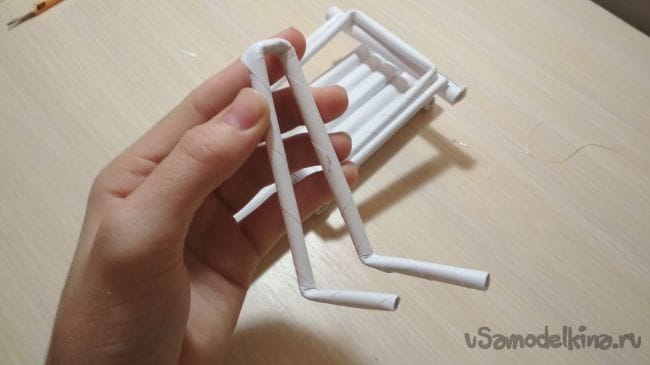 Затем берём последнюю тонкую трубочку и сгибаем её так как показано на фото: