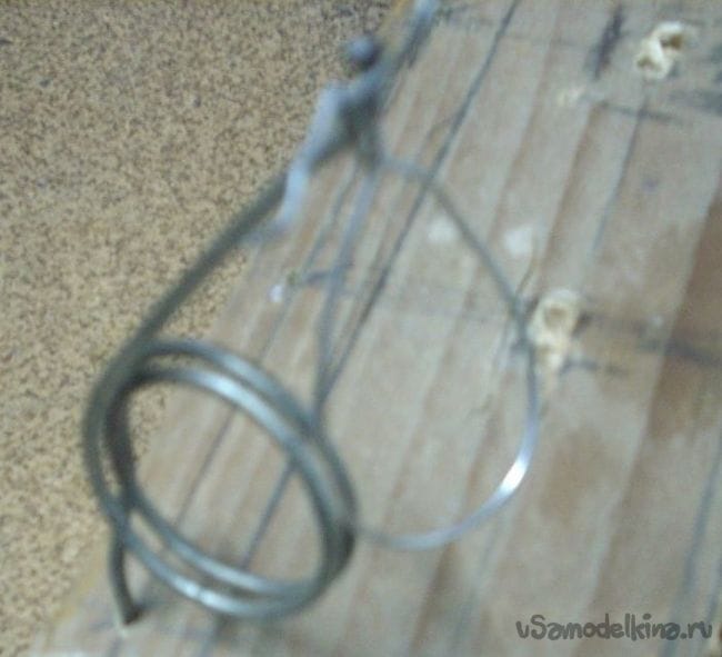 прихватив пружину, концы завязал.