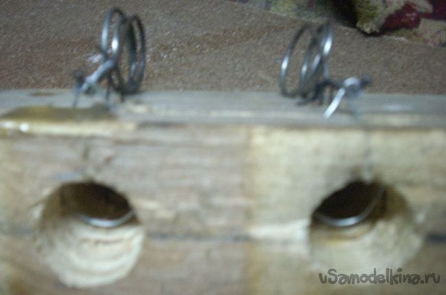 Здесь выяснилось, что пружины сидят прочно, но крутятся вокруг своей оси - пропустил сквозь них ту деревянную болванку, на которой пружины навивались и проблемы не стало.