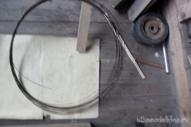 Из стальной проволоки нарезал 4 заготовки длиной 25 см,