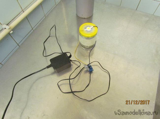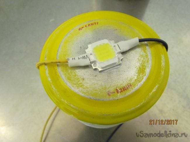 Крышку банки надо зачистить наждачкой и приклеить светодиод.