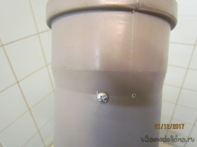 Всю эту конструкцию я спрятал в трубу 100 мм предварительно установив внизу три шурупа чтобы банка не провалилась.