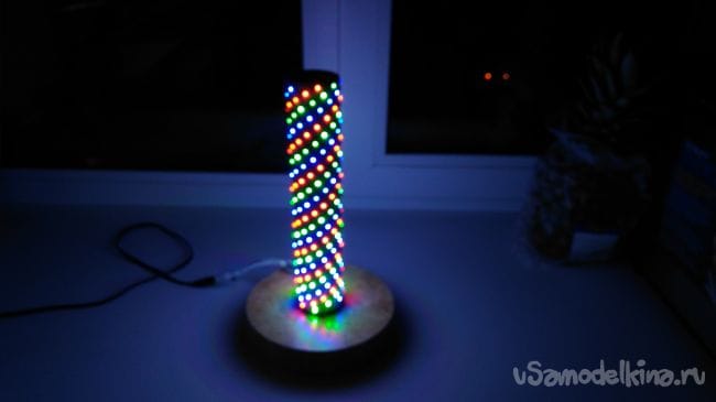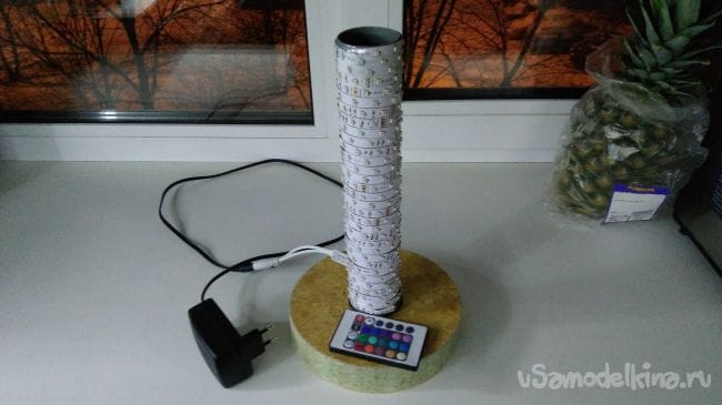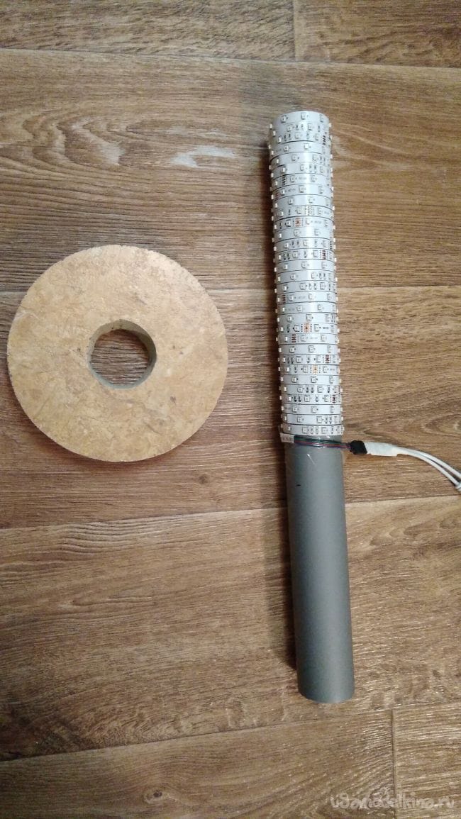 Дальше на отрезок трубы приклеиваю светодиодную ленту.