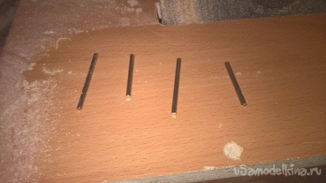 Я отметил и просверлил отверстия под стрежень. Стержень (4 штуки) изготовил из гвоздя.