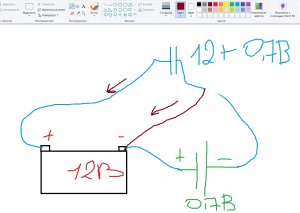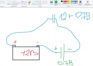 что если гальваническую батарею последовательно подключить через автомобильный АКБ, в итоге получаем +0.7В, заряжаем конденсатор. А далее конденсатор разряжается на аккумулятор с прибавкой этих 0.7В. Но нужен какой-то прерыватель, желательно на транзисторах