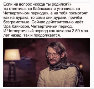 Korolev, как-то Валериус, В. и М.М., нас с тобой старыми обозвал. Интересно, знает ли он, из какой древней геологической эпохи он сам происходит? Вот что умные люди пишут: