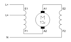 ну ток идет через статор, потом на щетки и через якорь замыкается цепь, так? То есть половина сопротивления туда и половина туда, ну или не поровну, это я не знаю.