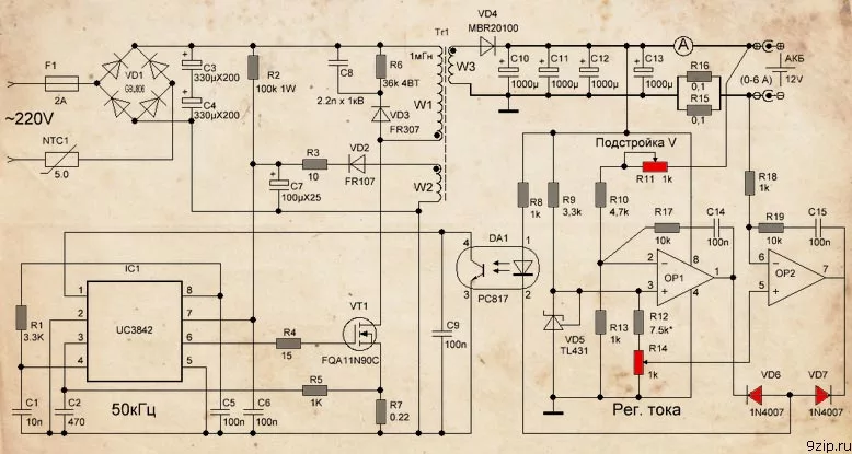 Sergeyp извини там все простое транс диоды и  кулер никакой регулировки к сожалению .я хотел как-то попробовать поэкспериментировать собрать импульстное зарядное ну хотябы просто бп на микросхеме 3842 так ничего и не вышло просто в построении импульстный бп я новичок ни разу не получилось сколько  схем перепробовал то лампа в цепи предохронителя всегда горит и резистор в цепи  диод .кандер .и резистор  первичной обмотке трасформатора сильно греетса сколько трансформатора намотать никак неполучаетса но сразу скажу сам нерасчитовал трансформатор брал значения прикреплённые к схеме может ты подскажешь какую-нибудь рабочую схему на 3842 буду благодарен .