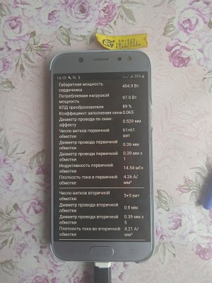 Здравствуйте господа помогите проверить данные.  скачал платную программу из плей маркета для расчета импульстного трасформатора и сделал расчёты щас выложу проверьте пожалуйста показания правильные или нет . И еще как мне тогда рассчитать цепь r.c.d в первичной обмотке для этой схемы транзистор буду использовать пока для настройки 4n60 потом поставлю помощнее