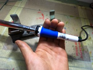 Ну подобными прекрасно лудится проволока медная длиной около 15-20 см и толщиной 3 мм. Спаиваются довольно массивные фигуры (это я о витражах). Диммер при этом накручен примерно на 60-70% мощности, мне хватает с головой.