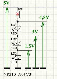 Включаю два светодиода, горят два... включаю три, все равно горят два, почему? Все голову сломал... последовательно, полярность соблюдаю... Питается от блока питания 5В от Нокии