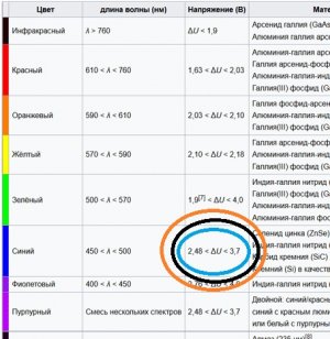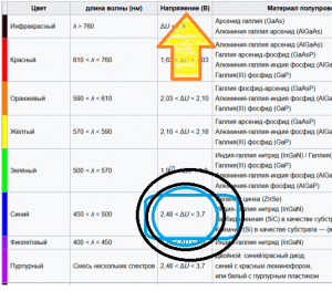 Да, посмотри в табл. внизу, светиться синие начинают (примерно!) от 2,48 В, дальше нужен резистор как ограничитель тока. 5 В откуда берешь, если от компа, то да, спалит сразу, там дури немеряно. А вот зарядку какую взять от мобилы, у нее на ХХ напруги поболее, может, и 3 засветится.